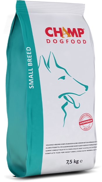 Η Champ Small breed, είναι μια πλήρης, εύπεπτη και ισορροπημένη τροφή για σκύλους μικρόσωμων φυλών με κανονική δραστηριότητα.